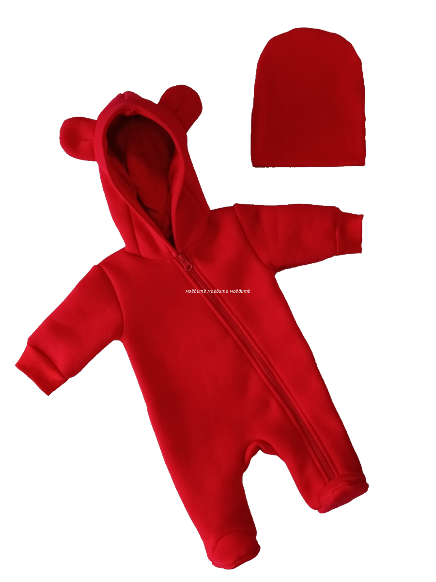 "МоёДитё" комплект: комбинезон + шапочка КС161 красный "Магнолия"