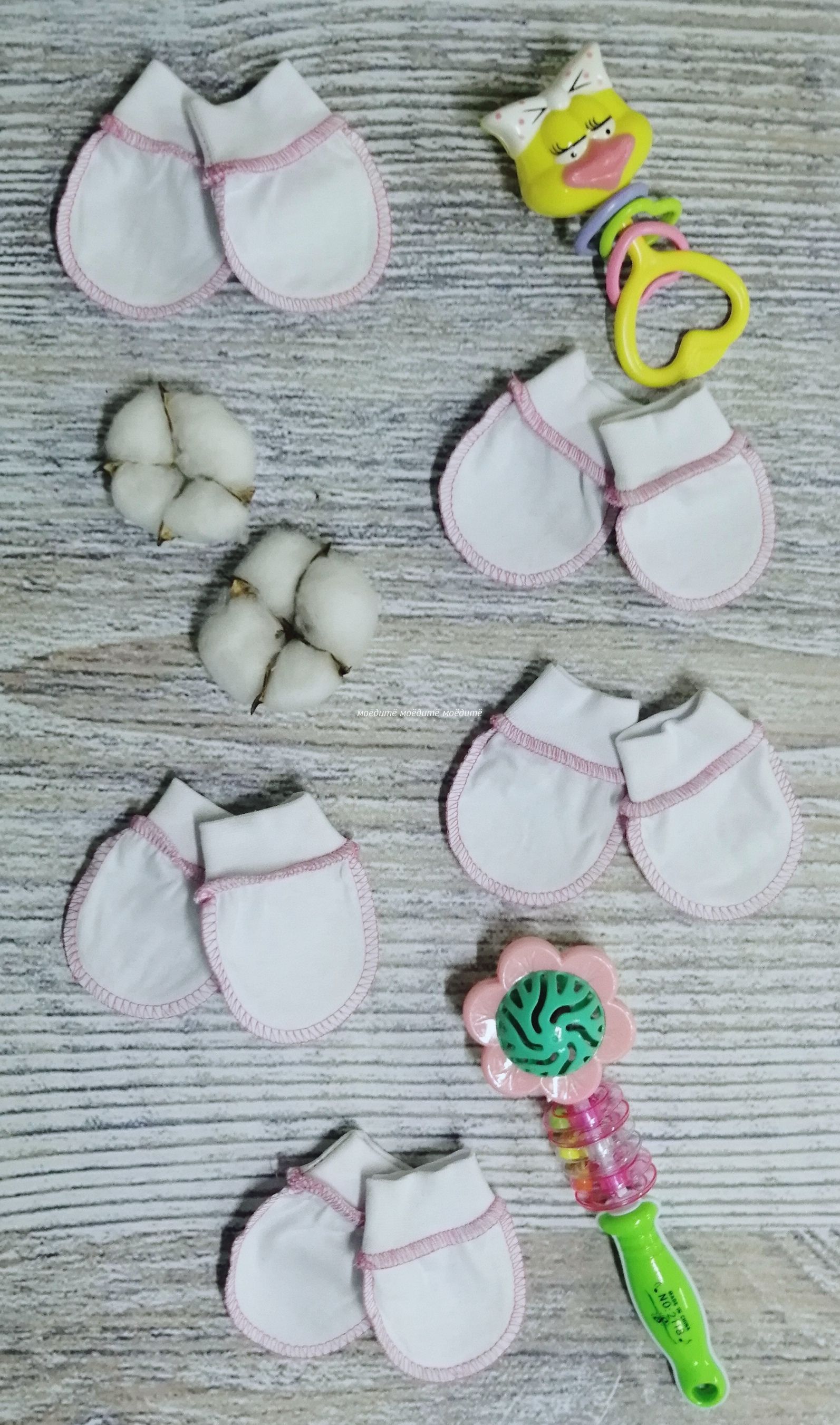 "МоёДитё" царапки кулирка белые с розовым ЦК018 "Гардения" в Волгограде